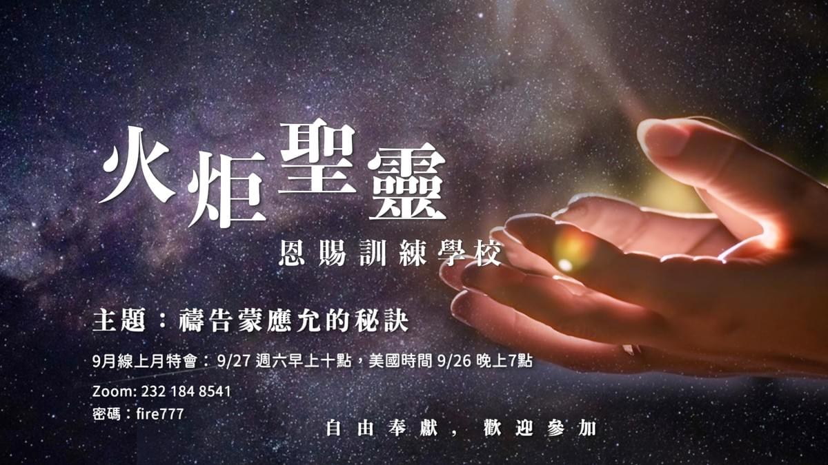 因著神的呼召,為著幫助在這末世神的衆兒女們,能在聖靈所賜的恩賜上被裝備、訓練及提升;成為在末後大有能力的屬靈將領,而創立火炬聖靈恩賜訓練學校。